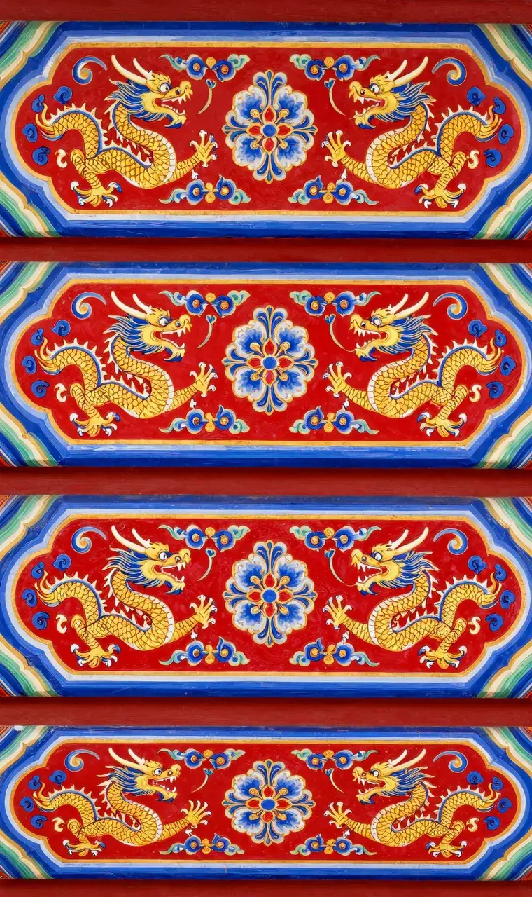 石膏线条、金粉装饰,让彩绘有灵动之美